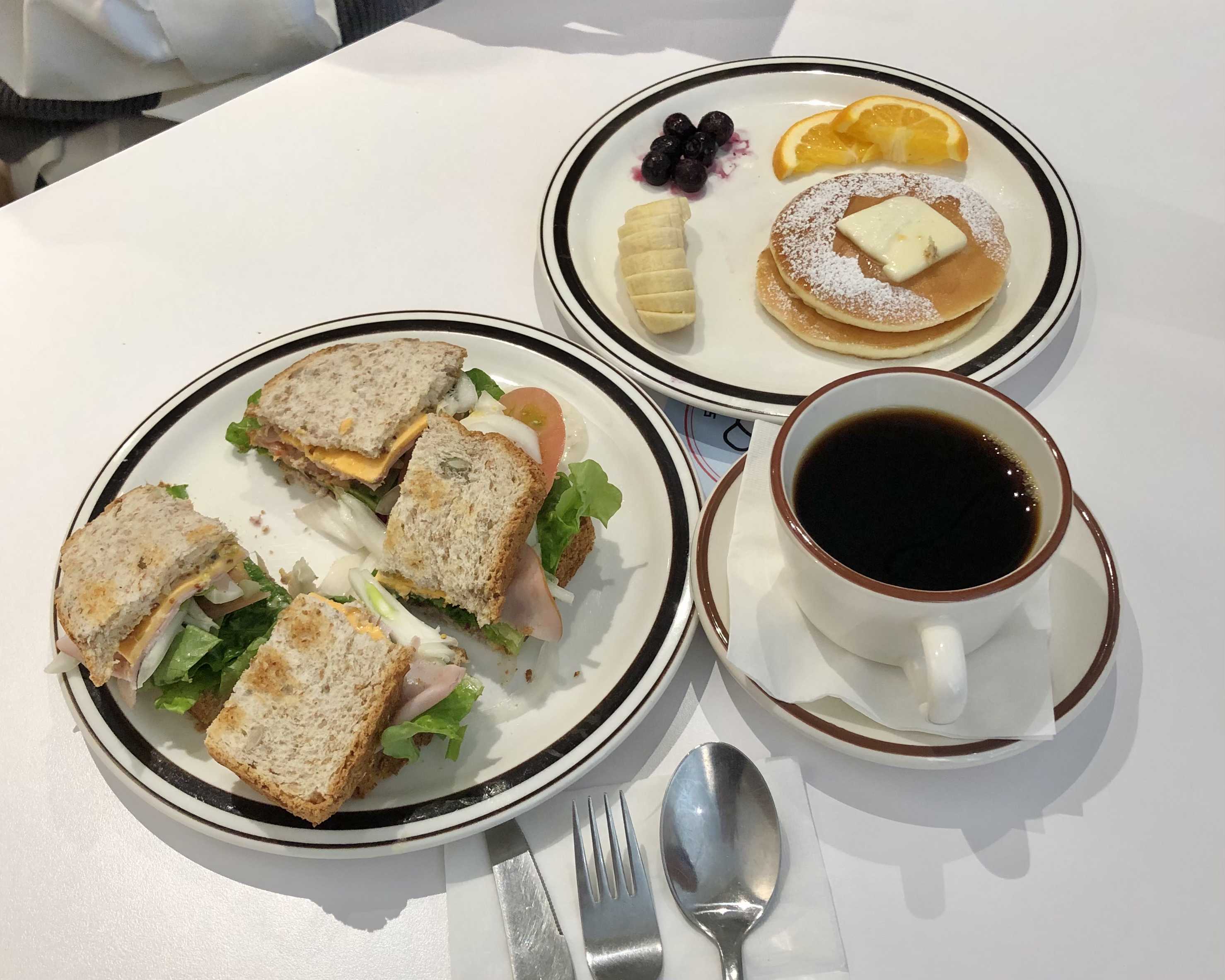 플레인 팬케익과 드립 커피도 나왔어요.