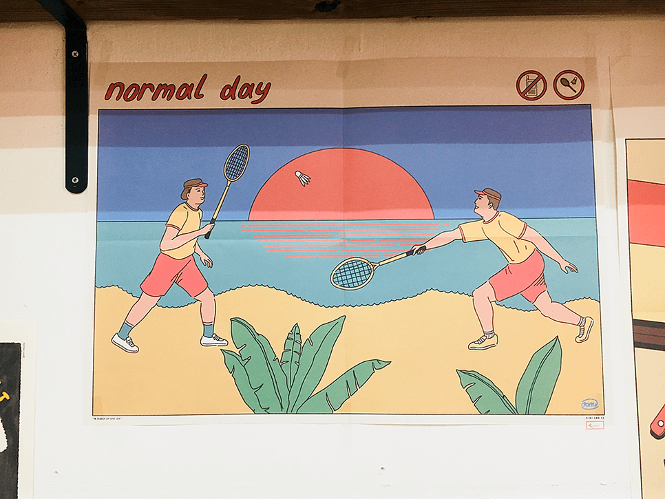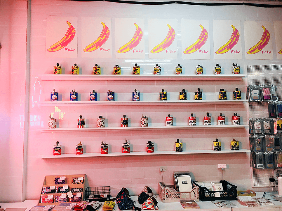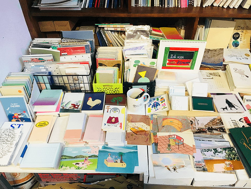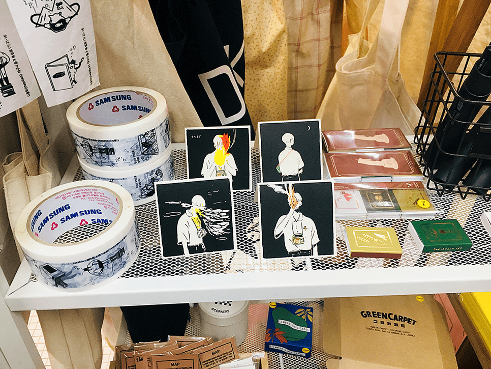 엽서나 스티커들도 많이 전시되어 있어요.